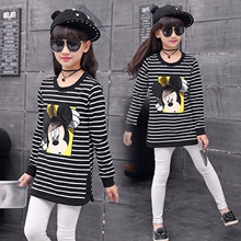 女童春装上衣中长款米奇t恤长袖纯棉中大童小女孩春秋儿童打底衫
