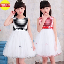 女童红色条纹连衣裙蓬蓬纱裙小学生夏装公主裙子8女孩12-15岁大童