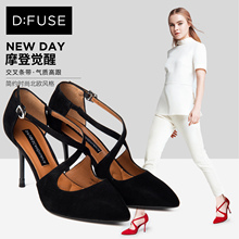 D:Fuse/迪芙斯春绒面羊皮尖头交叉细带高跟单鞋女鞋DF63111061