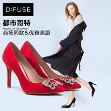 D:Fuse/迪芙斯商场同款羊反绒细高跟尖头浅口女鞋单鞋DF61113076