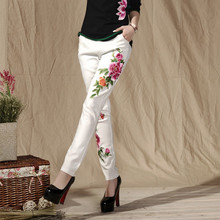 凡2017春秋新款复古民族风女装打底裤百搭显瘦小脚裤精美绣花长裤