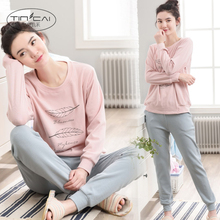睡衣女秋纯棉长袖春秋韩版休闲宽松少女士夏季全棉家居服套装秋季