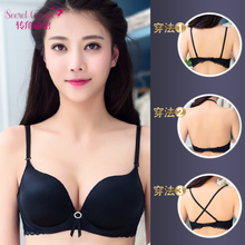 超薄款交叉肩带美背文胸无钢圈聚拢小胸无痕露背挂脖性感前扣内衣