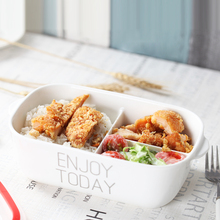 耐热微波炉专用带盖分格陶瓷饭盒密封长方形保鲜盒分隔便当盒套装