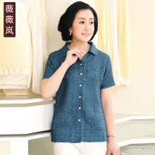 妈妈夏装衬衫棉麻短袖40-50岁2017新款中年妇女上衣大码中老年t恤