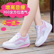 正品摇摇鞋女2017春秋款网面透气跑步鞋坡跟运动鞋厚底增高旅游鞋