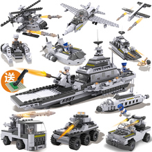 儿童玩具塑料拼装积木拼插益智力军事系列积木航母男孩礼物