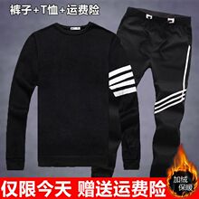 男士卫衣加绒加厚套装男秋冬季青少年休闲运动套装男韩版套头外套