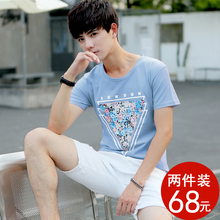 【2件装】2017夏装男士短袖t恤青少年半袖粉色体恤潮流男装上衣服