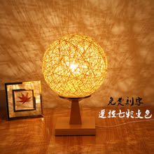 创意时尚礼物台灯田园麻线藤球台灯卧室床头灯遥控七彩宜家小夜灯