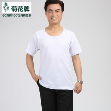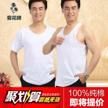 菊花牌老头衫纯棉宽松白色跨栏背心中老年圆领短袖汗衫全棉男大码