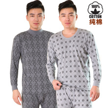 男士秋衣秋裤半高领棉毛衫套装纯棉中老年人保暖内衣全棉薄款印花
