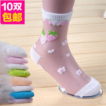 儿童水晶袜学生冰丝袜草莓短袜子 女童透明蚕丝袜夏薄宝宝袜