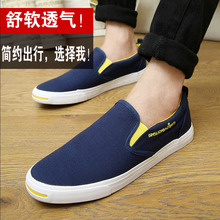 春夏季男帆布鞋低帮青年男士休闲布鞋潮流男鞋子一脚蹬懒人鞋透气