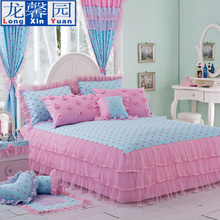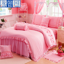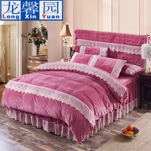 龙馨园纯棉韩版蕾丝床裙四件套全棉4件套花边婚庆床罩款床上用品