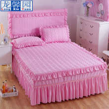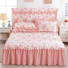 韩式花边加棉床裙纯色磨毛加厚床罩夹棉绗缝床头罩床套1.5/1.8米