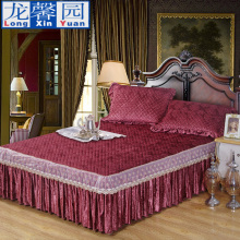 欧式水晶绒加厚夹棉纯色法莱蕾丝花边床裙1.5/1.8m2.0米床罩单件