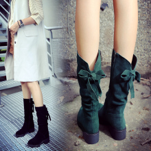 秋冬磨砂皮中筒靴女 保暖平底靴子女靴低跟加绒棉女鞋中靴雪地靴