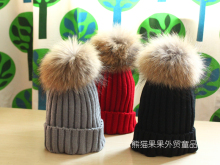 爆款亲子帽外贸出口原单男女儿童帽子超大毛球球貉子毛球毛线帽子