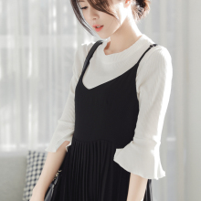 夏季七分袖女T恤喇叭袖上衣修身短款白色圆领打底衫韩版百搭纯色