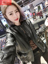 2017欧货真皮皮衣夹克女短款 春装新款绵羊皮时尚棒球服外套潮