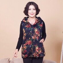 中老年马甲女春秋薄 中年人背心外套 老人大妈妈装中长款连帽坎肩
