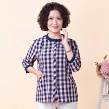 中老年格子衬衫女长袖2017春夏薄款50岁中年人妈妈装夏装纯棉衬衣