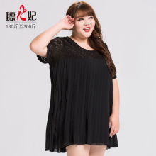 膘儿妃2017新款大码春装蕾丝女装宽松加肥加大码200斤显瘦连衣裙