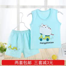 宝宝夏季套装背心短裤 婴儿薄款纯棉新生儿夏季无袖睡衣 两套包邮