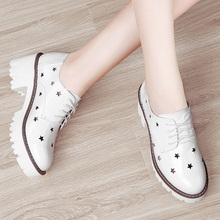 单鞋英伦小皮鞋星星镂空春季厚底松糕小白鞋粗跟中跟漆皮系带女鞋