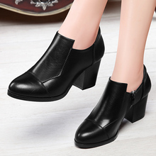 单鞋女 尖头春鞋新款女士粗跟高跟皮鞋女英伦工作鞋春季女鞋深口