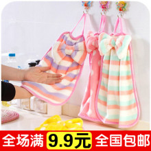 满9.9包邮 珊瑚绒蝴蝶结挂式擦手巾 强吸水不掉毛 厨房毛巾抹布