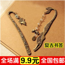雕花飞天仙子书签 复古精灵花纹美人鱼 串珠蝴蝶结书签 金属书夹