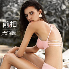 承托文胸前扣无钢圈美背无痕 一片交叉带式内衣AB厚C杯薄小胸070