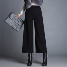 雅莉兰冬季保暖毛呢九分阔腿显瘦百搭通勤羊毛加厚修身大码宽女裤