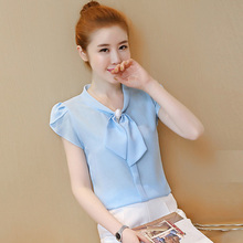 雪纺衫短袖女2017新款夏季韩版宽松百搭衬衫显瘦女士上衣打底小衫
