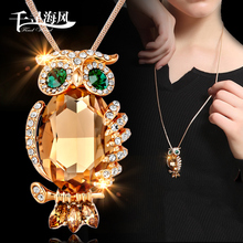 猫头鹰采用施华洛世奇元素水晶毛衣链韩版秋冬生日礼物