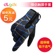 户外防滑情侣防风防水抓绒手套触屏手套男 冬季保暖女加厚加绒