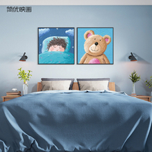 简优映画 熊和孩子 可爱动物儿童房间装饰画 现代家居卡通挂画