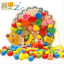 包邮木丸子儿童益智早教木制玩具串珠绕珠系列积木串珠穿线玩具
