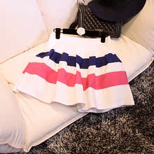 2016秋冬新品时尚百搭条纹短裙明星同款伞裙#
