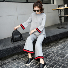 2017春装新款女装时尚气质阔腿裤套装女休闲运动服韩版宽松卫衣潮
