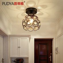 美式小吸顶灯铁艺水晶过道灯创意艺术门厅灯走廊玄关阳台吸顶灯具