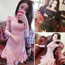 2016夜店新款韩版女装秋季一字领长袖包臀性感连衣裙夜店打底裙子