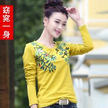 2017春装新款上衣民族风刺绣打底衫女潮外穿秋衣女式长袖T恤衣服