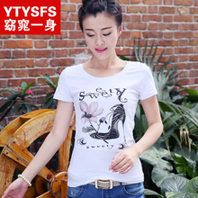女士短袖t恤女夏2017女装夏装上衣圆领修身体恤衫大码民族风衣服