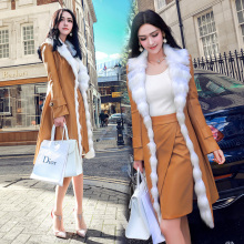 秋冬装新款欧洲站名媛风女裙套装中长款皮风衣保暖加绒皮草外套女