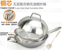 苏泊尔五层复合不锈钢铜芯至尊炒锅CC30G1无涂层无烟锅CC32G1