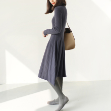 针织连衣裙女中长款秋冬款2016新款韩版高领长袖冬季打底毛衣裙