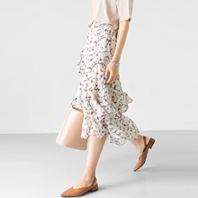 雪纺碎花半身裙女夏季2017新款中长款韩版百搭宽松荷叶边鱼尾裙潮